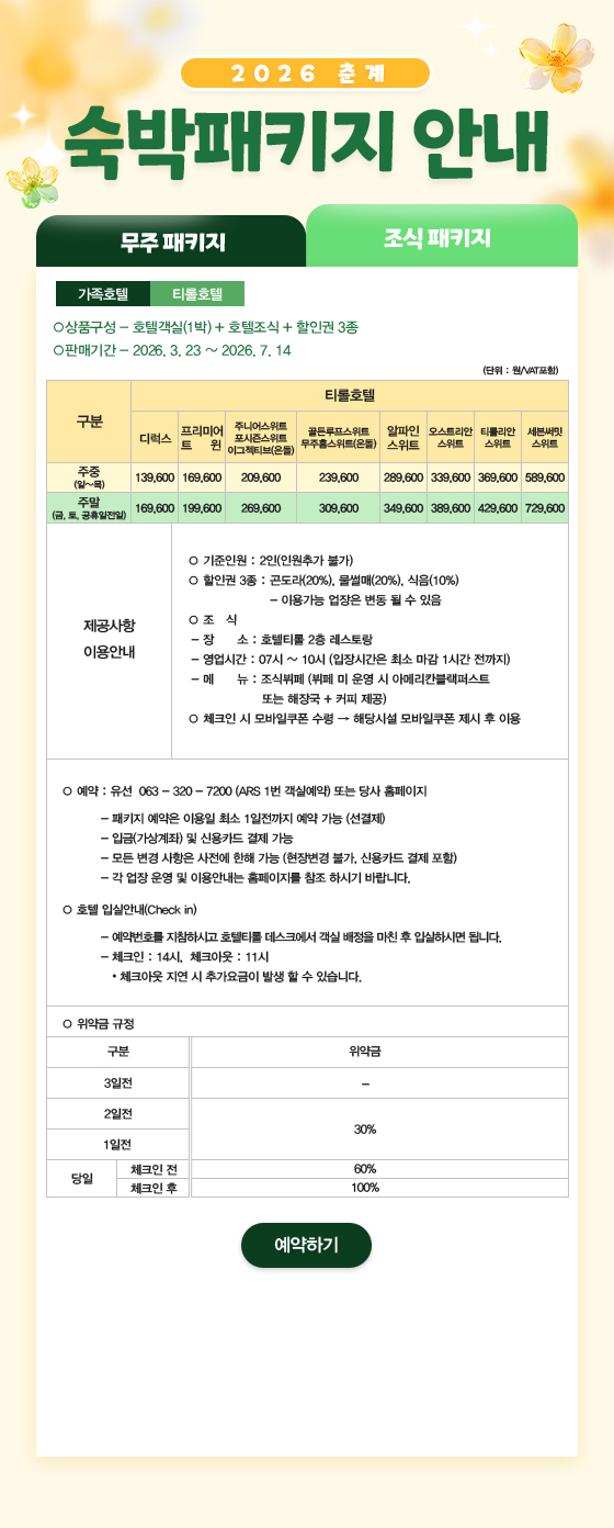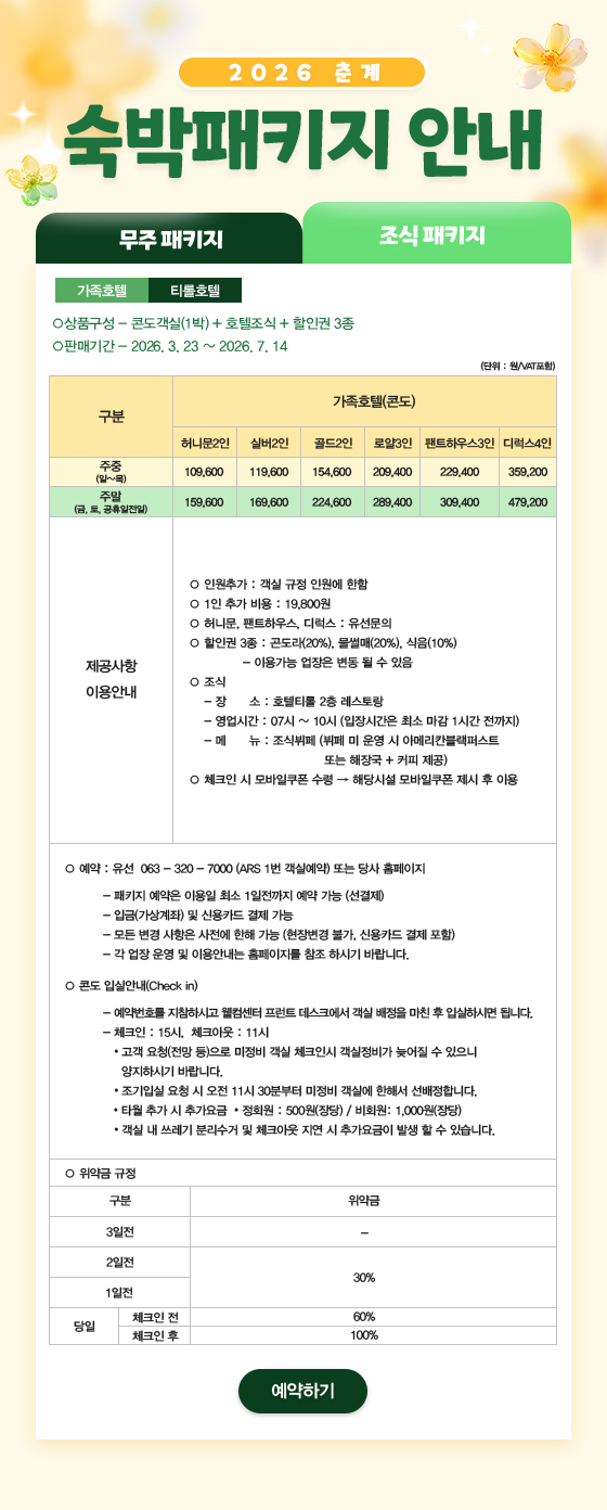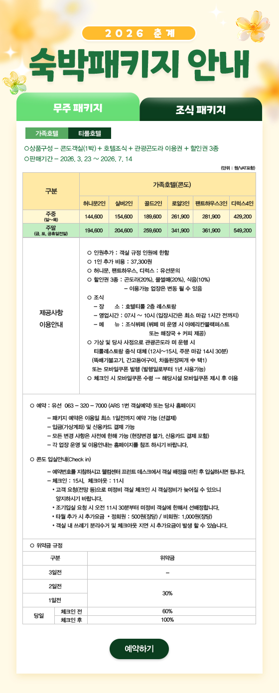 덕유산리조트 덕유산스케치 덕유산현장소식 덕유산실시간보기 산책로소개 찾아오는길 기상정보 할인안내 패키지&이벤트 공지사항 주변관광지 웰컴센터 호텔티롤 가족호텔 국민호텔 유스타운 객실예약 춘계 패키지 예약 잔여객실 현황 솔마을 객실 숙박추첨예약 슬로프 요금안내 스키스쿨 유아스키학교 인터스키스쿨 노르딕스키 강습 레이싱스쿨 스키보드 수리소 슬로프 119 스키장운영현황 덕유산CC 18홀 코스 이용안내 예약안내 예약하기 휴일예약일정 휴일예약신청 휴일신청조회 이용에티켓 그린밸리 파3 골프패키지 곤도라소개 덕유산 및 추천등산코스 덕유산의 자연생태 관광곤도라 예약 관광곤도라 예약조회/변경/취소 썰매장/레저 사우나 식음시설 편의시설 임대업장 공실안내 단체행사 행사시설 숙박시설 웨딩(연회) 식음시설 레저&스포츠 행사프로그램 유스타운 고객의소리 FAQ 카풀게시판 주요연락처 채용임대공고 결산공고