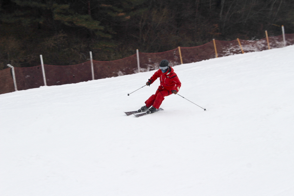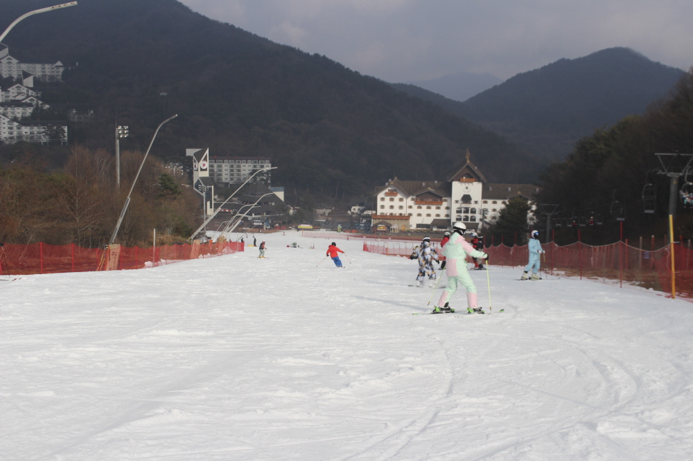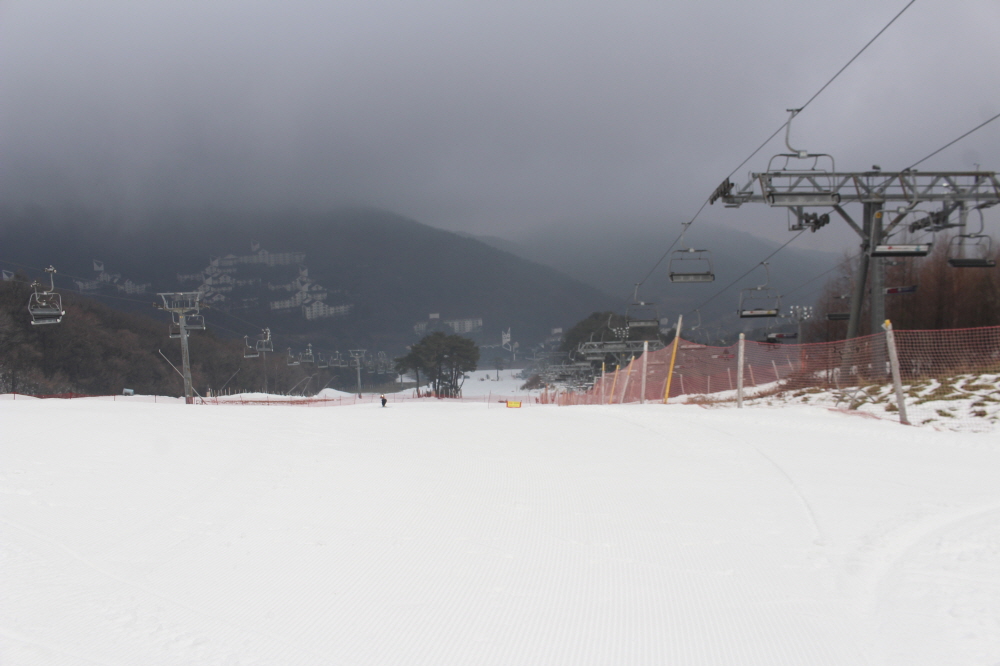 고르게 정설된 설면 덕분에 스키어들의 안정적인 주행이 돋보였던 이스턴 슬로프의 모습입니다.