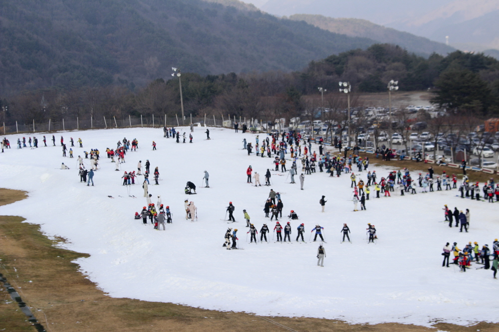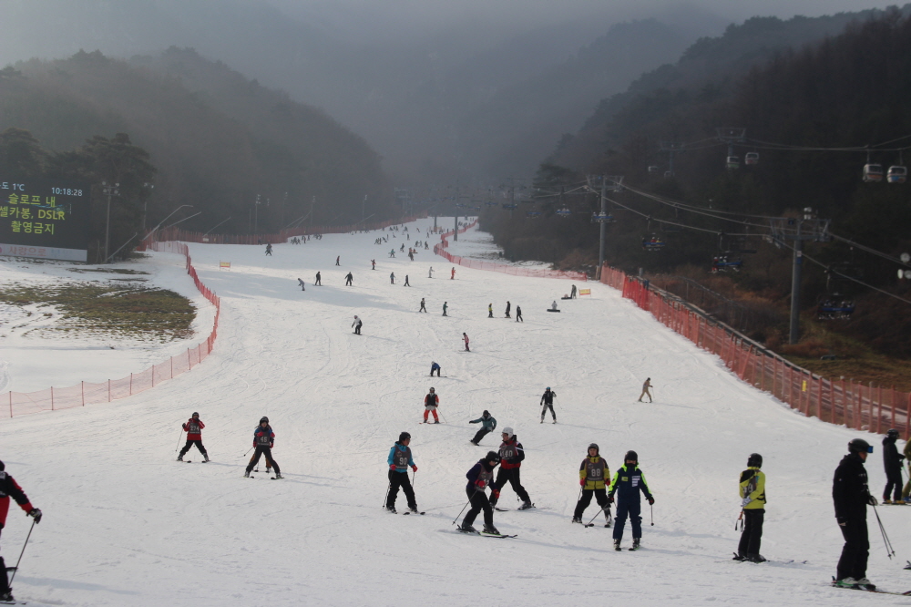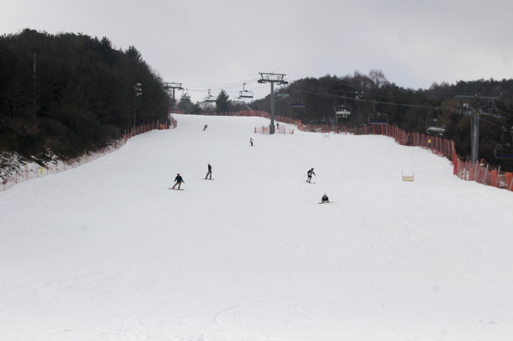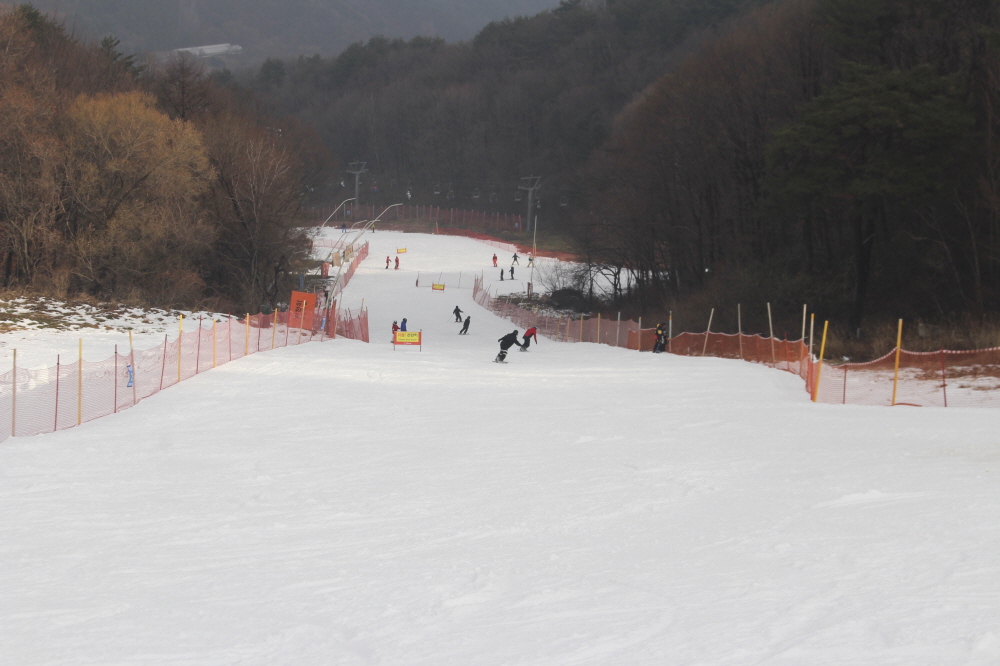 시간에 따라 설질이 달라지긴 했지만, 스키장 분위기는 전반적으로 여유롭습니다