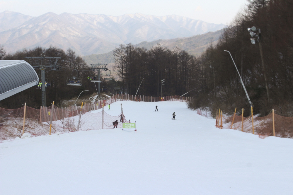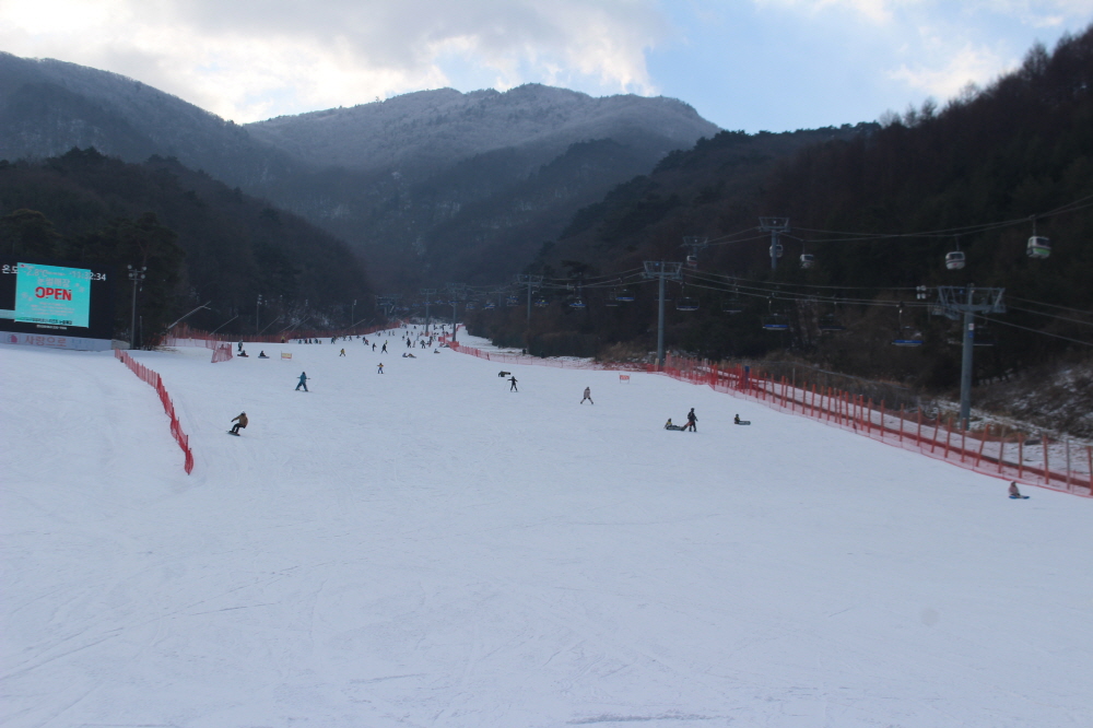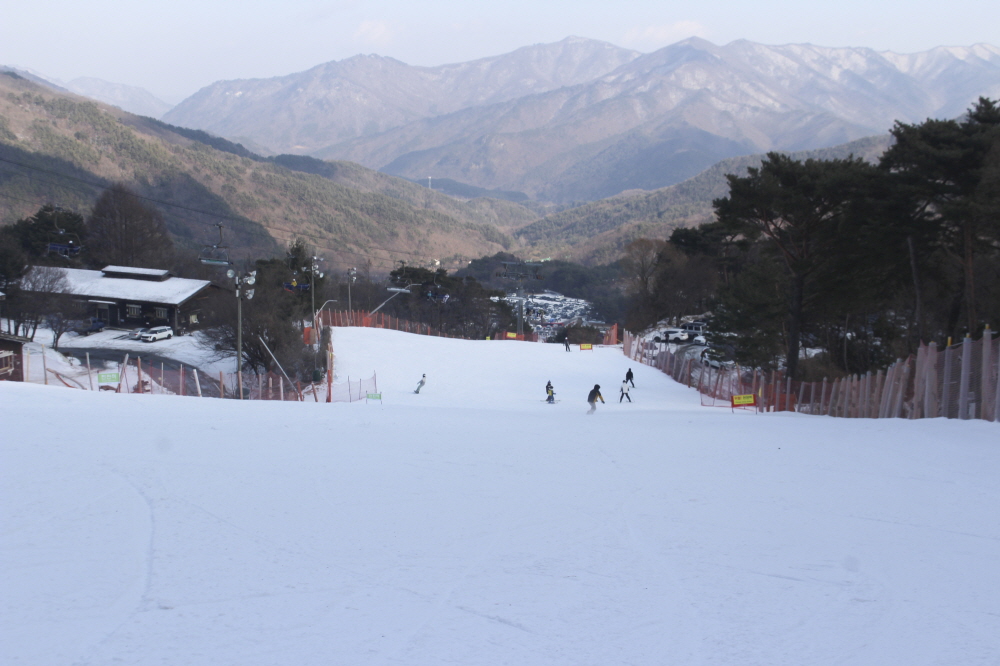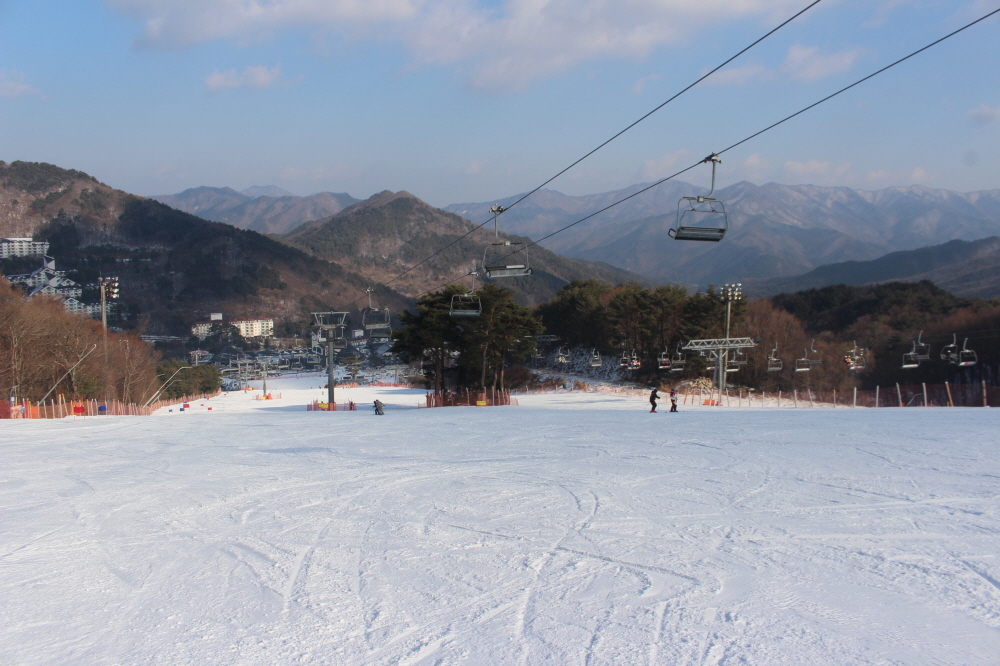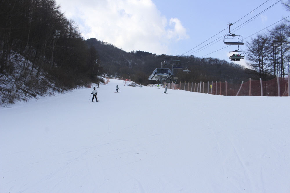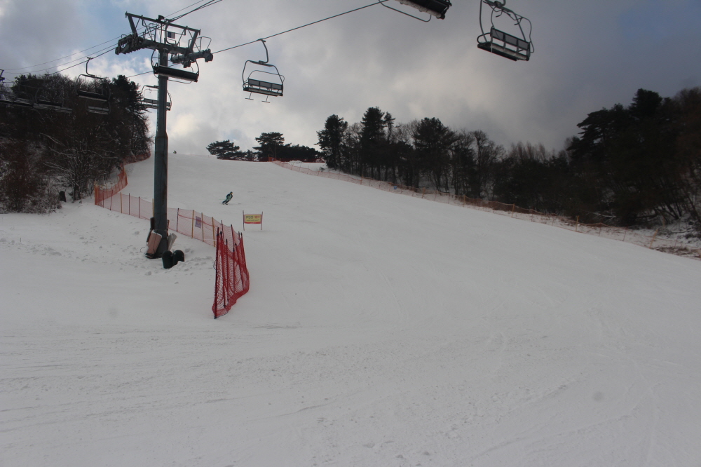 간간이 부는 바람도 슬로프 이용에는 큰 영향을 주지 않았습니다.