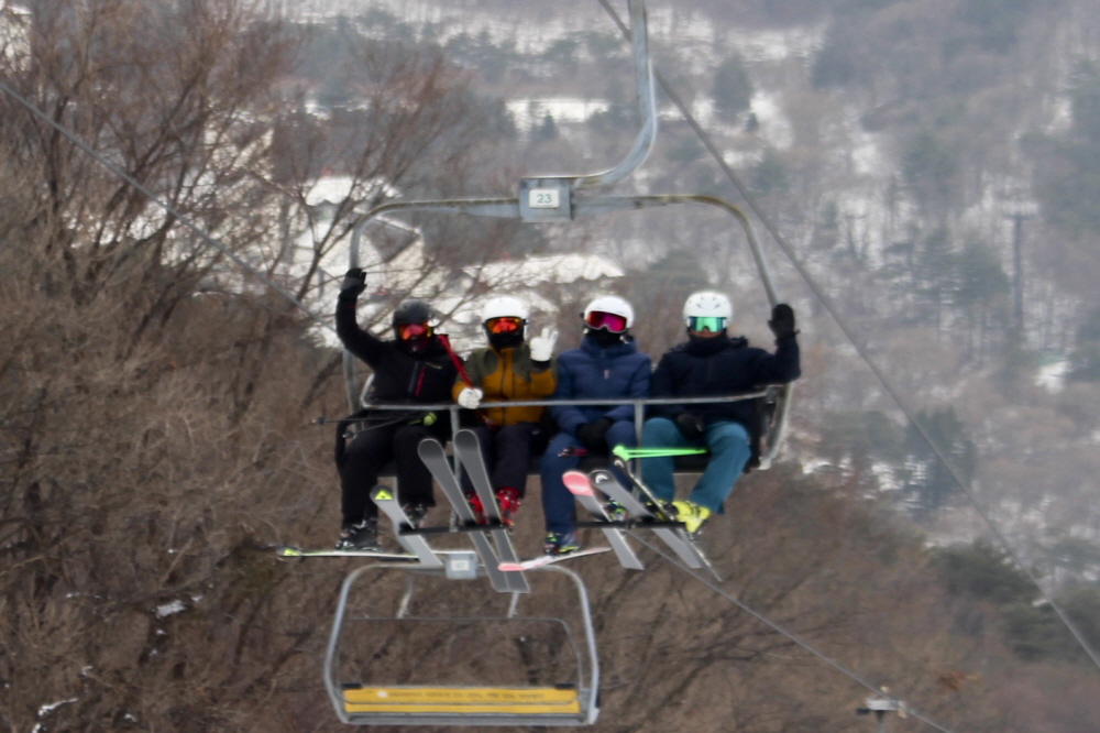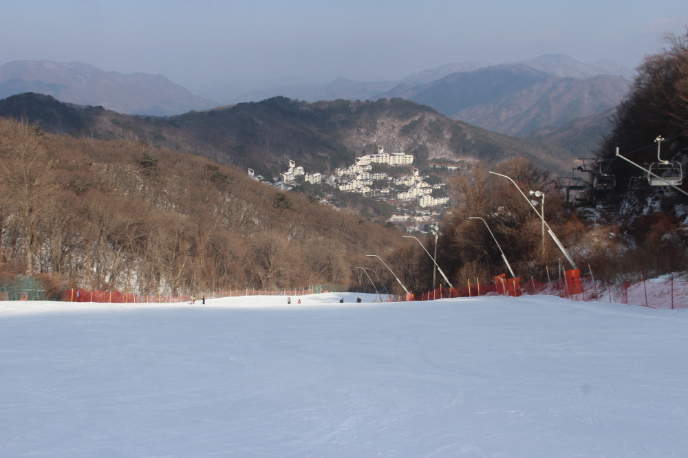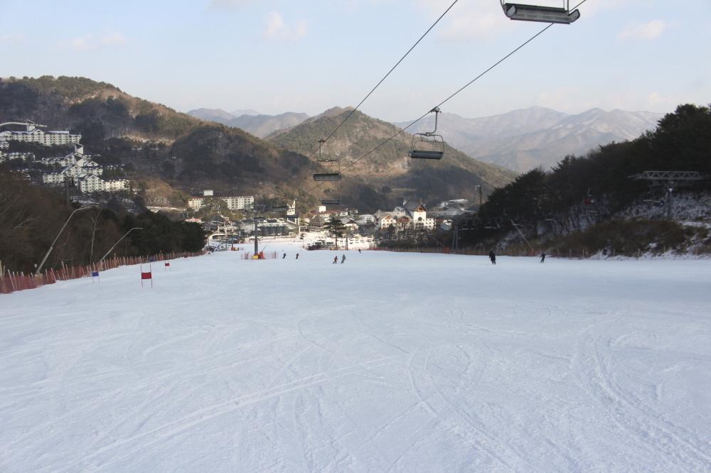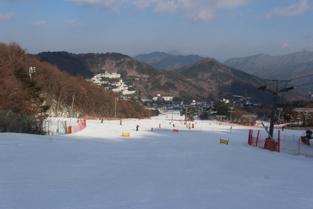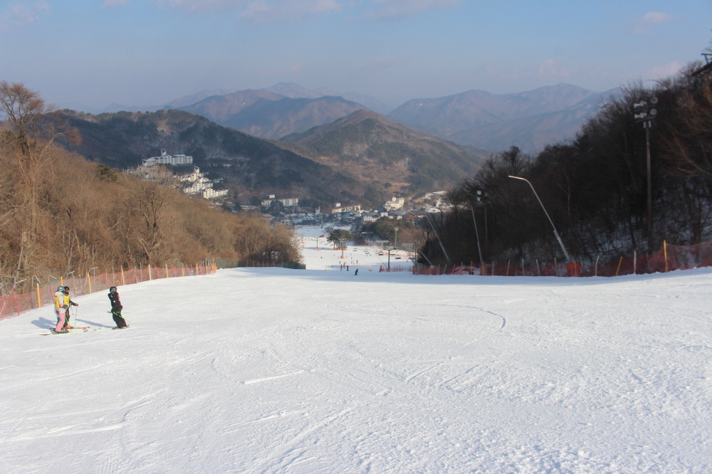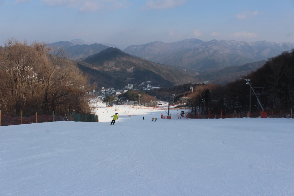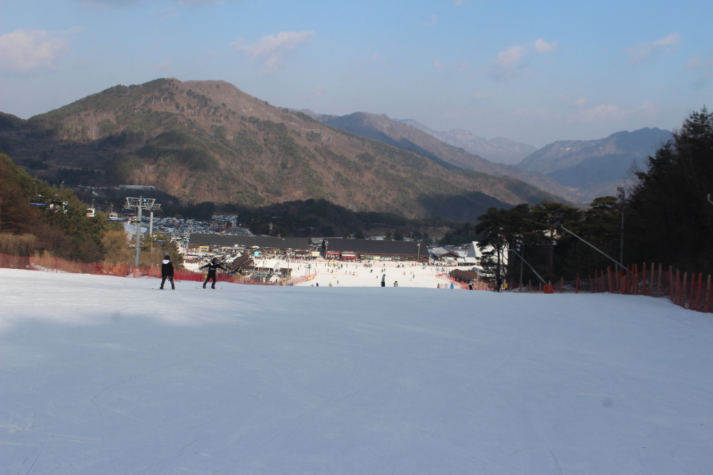 간간이 부는 바람도 슬로프 이용에는 큰 영향을 주지 않았습니다.