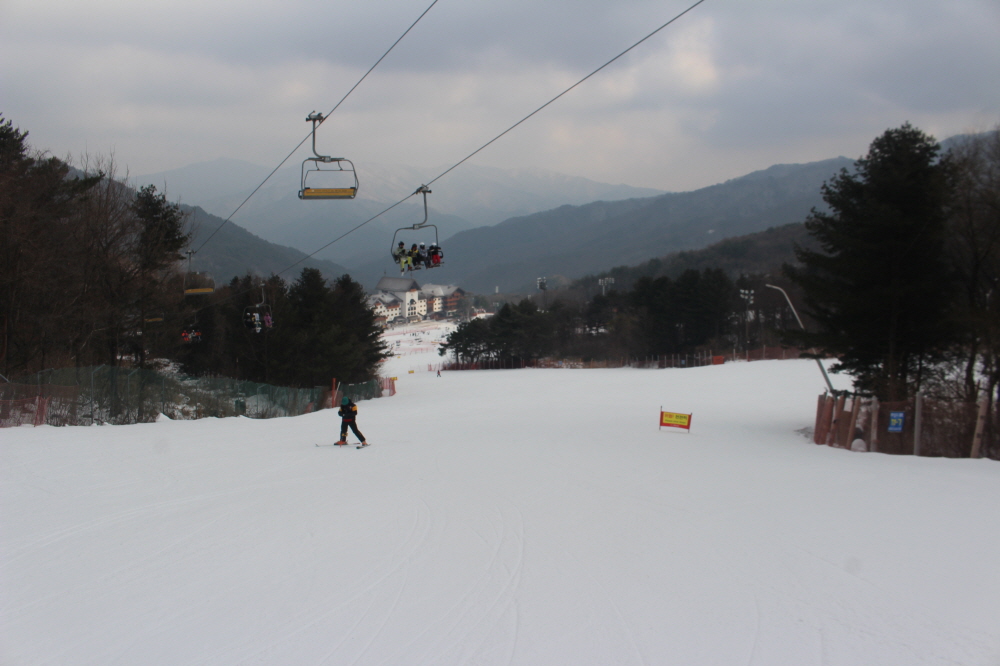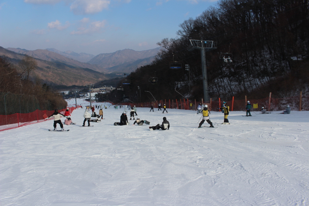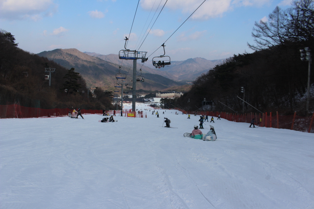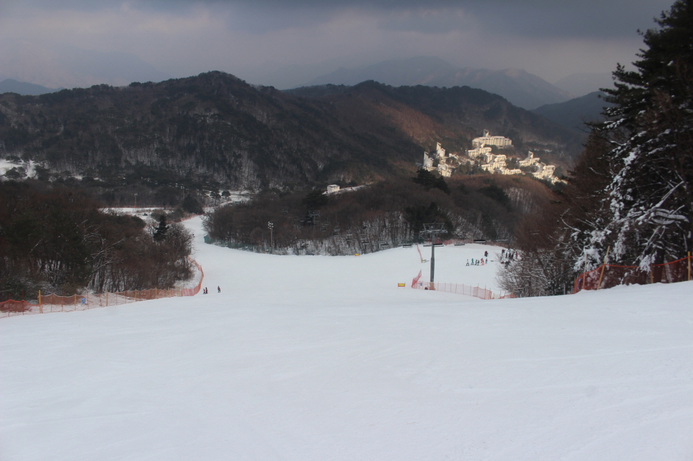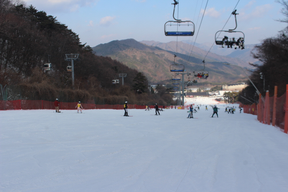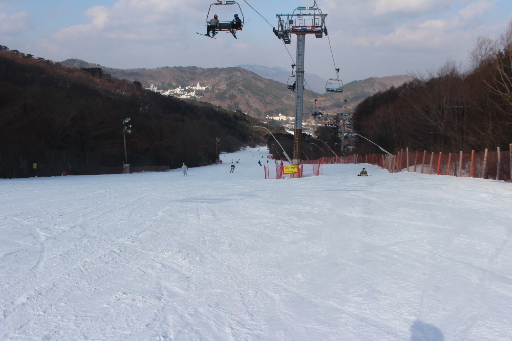 간간이 부는 바람도 슬로프 이용에는 큰 영향을 주지 않았습니다.
