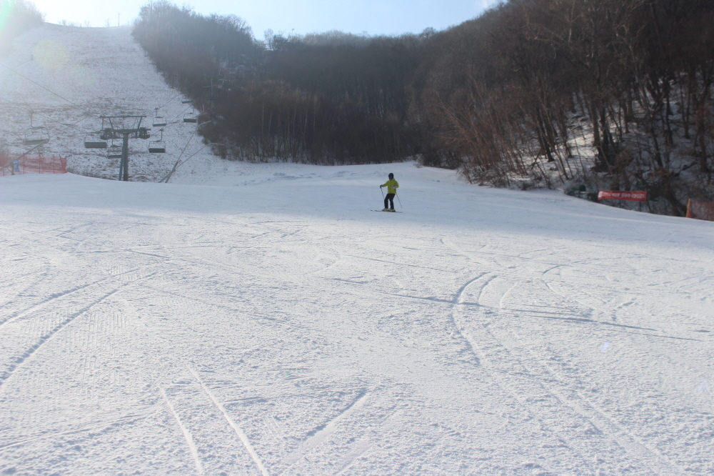 오전에는 새벽부터 유지된 영하의 기온 덕분에 단단하게 다져진 슬로프를 느낄 수 있었습니다.