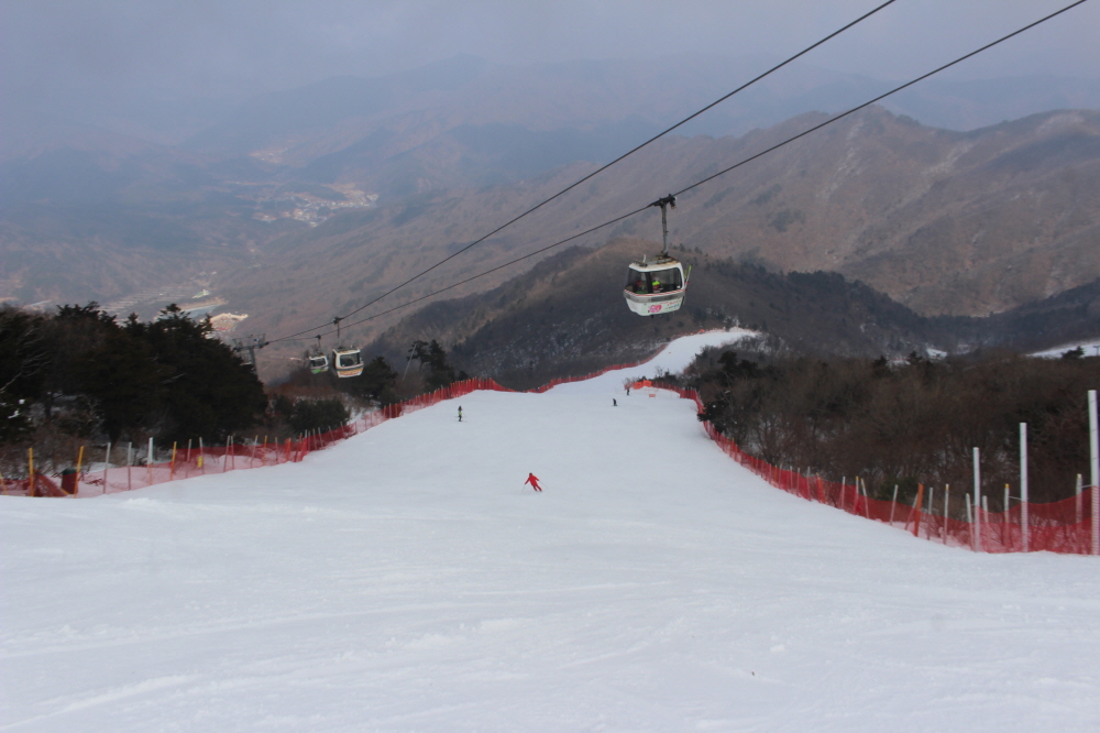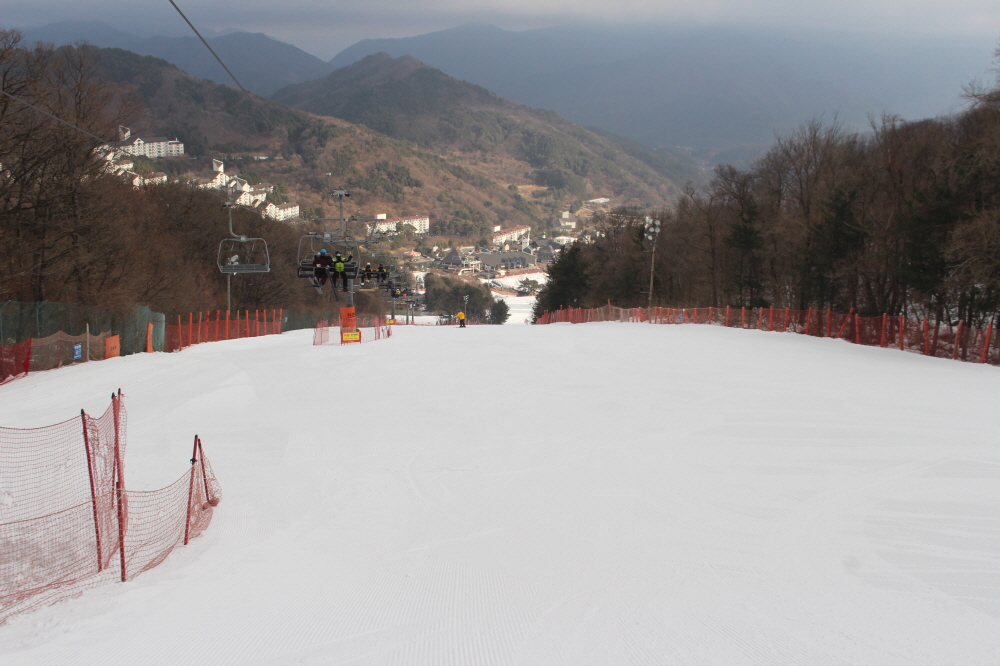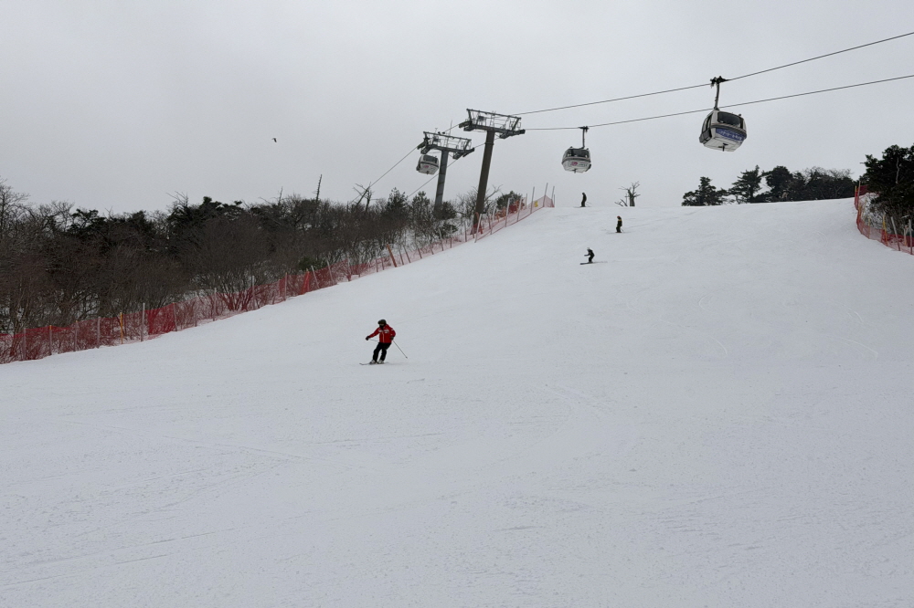 최상급 스키 전용 슬로프인 모짜르트에서 이어지는 카덴자 슬로프와 미뉴에트 슬로프는 하늘과 설면이 이어지듯 시야가 트여, 내려오는 길 내내 겨울 산의 풍경이 함께 따라오는 느낌이었습니다.