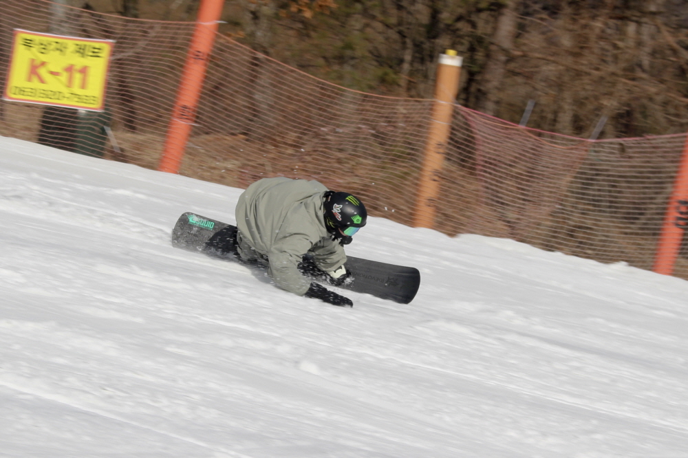 보드 전용 슬로프 폴카는 라인을 따라 남은 자국 위로 햇빛이 얹히며, 지나간 흔적들이 패턴처럼 남아 있는 장면이 인상적이었습니다.