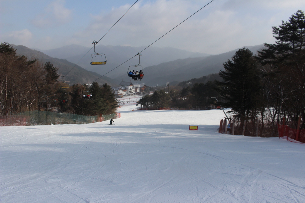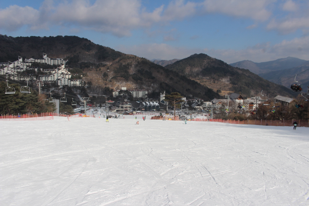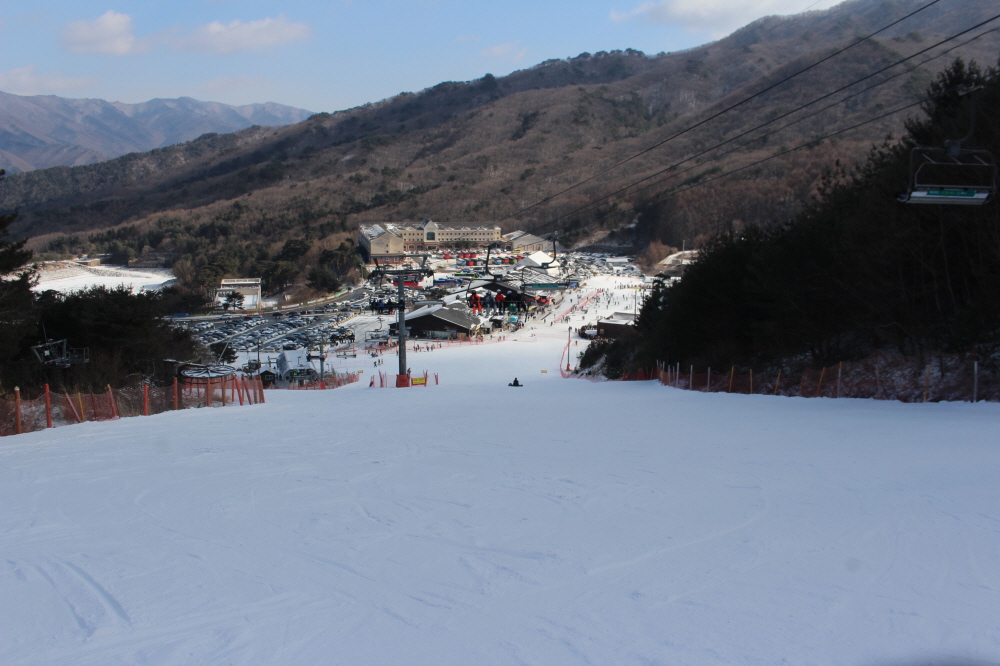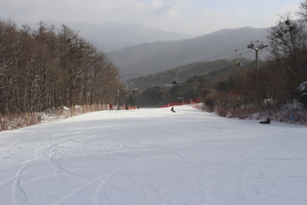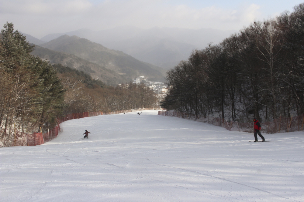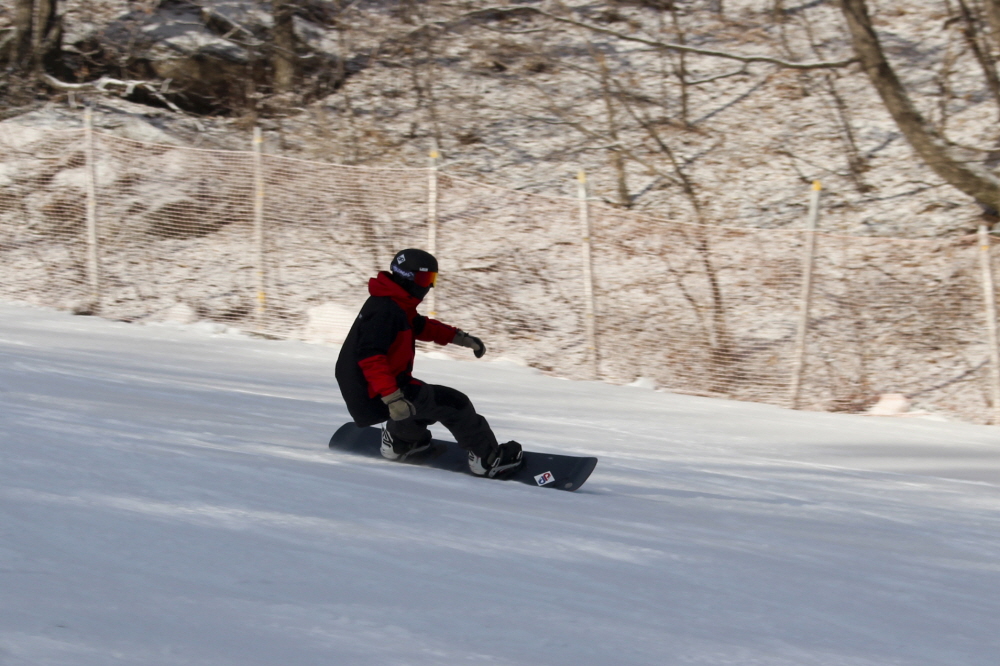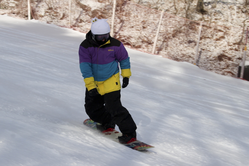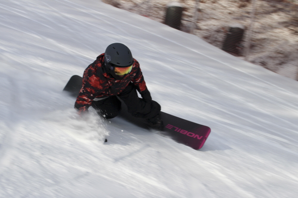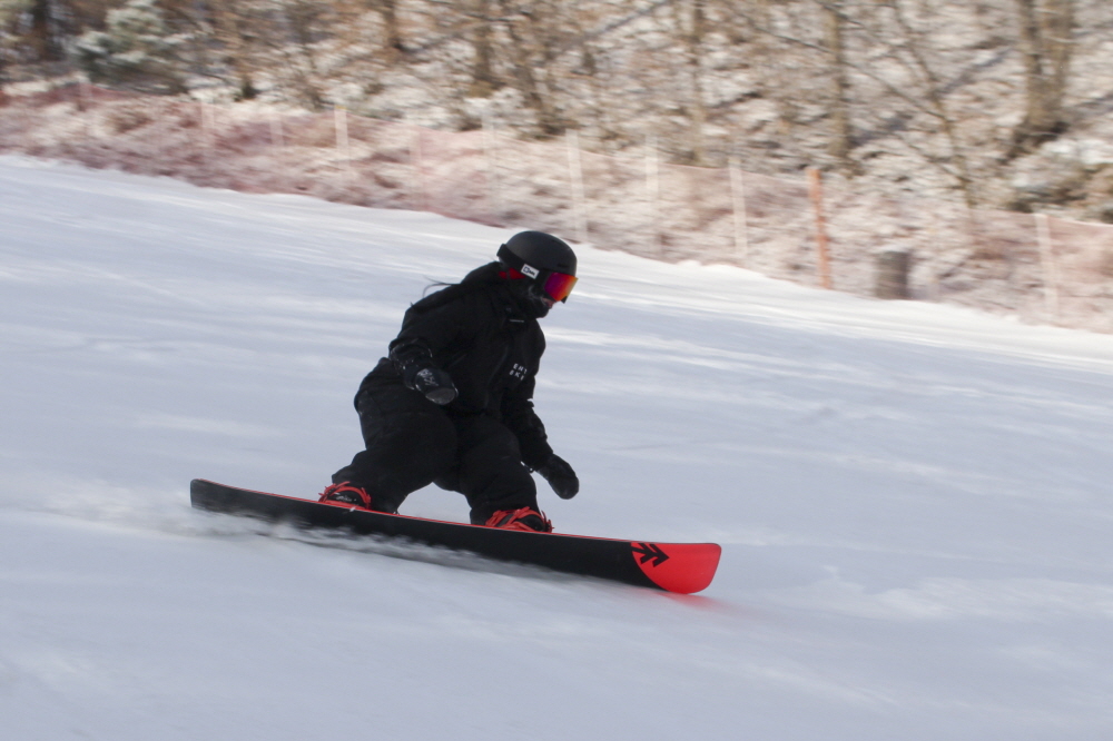 썬다운에서 이어지는 보드 전용 상급 슬로프인 파노라마에서는 넓게 시야를 쓰며 길게 호를 그리는 주행이 이어졌고, 일정한 간격을 유지한 채 흐르듯 내려오는 움직임이 슬로프 전체에 리듬을 만들었습니다.