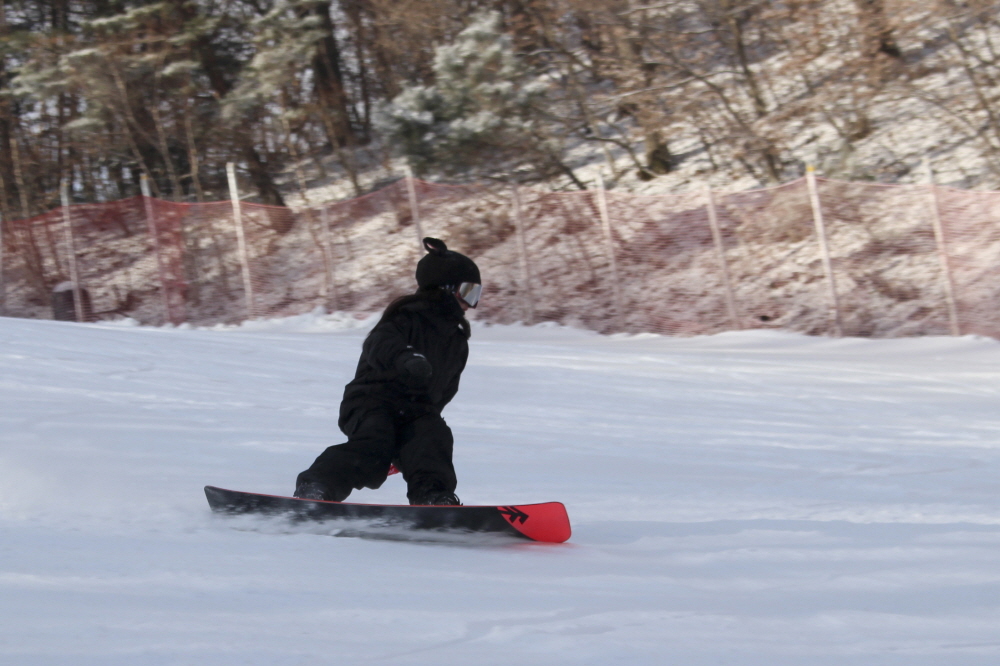 레이더스 하단에서 이어지는 루키힐 슬로프에서는 진입 전 몸의 균형을 잡고 신중하게 출발하는 모습과, 점점 자신감을 얻으며 속도를 붙이는 흐름이 자연스럽게 이어졌습니다.