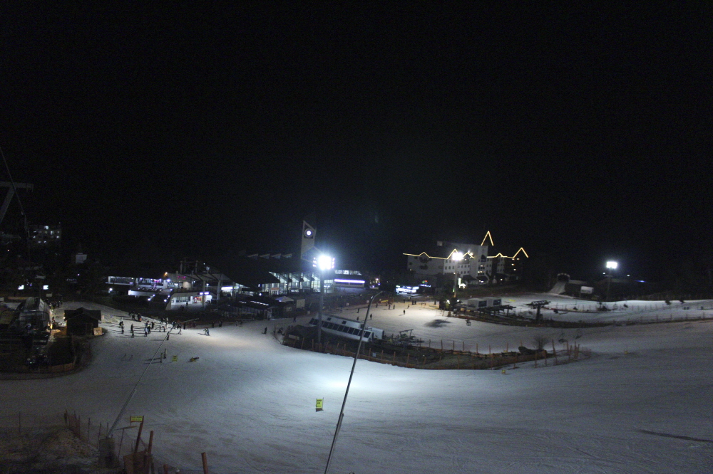 어둠이 내려앉은 설원 위로 조명이 켜지는 순간,
