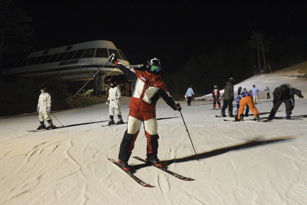 조명 아래 반짝이는 설원과 그 위에서 활짝 웃던 고객님들의 모습이