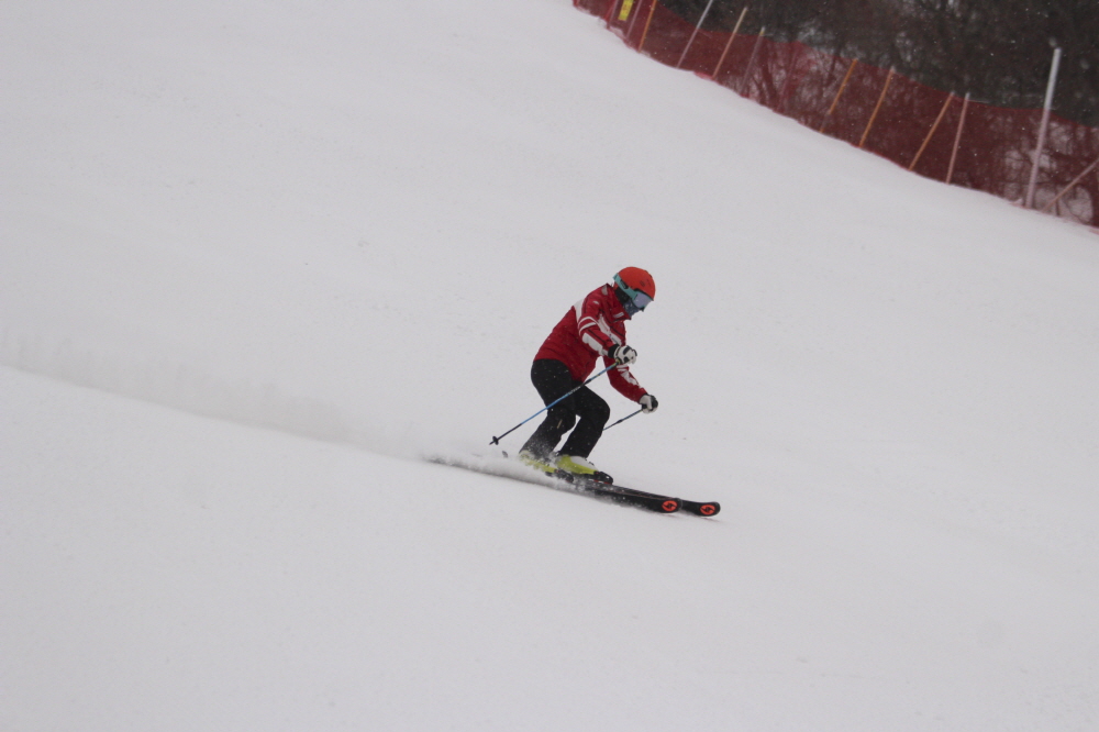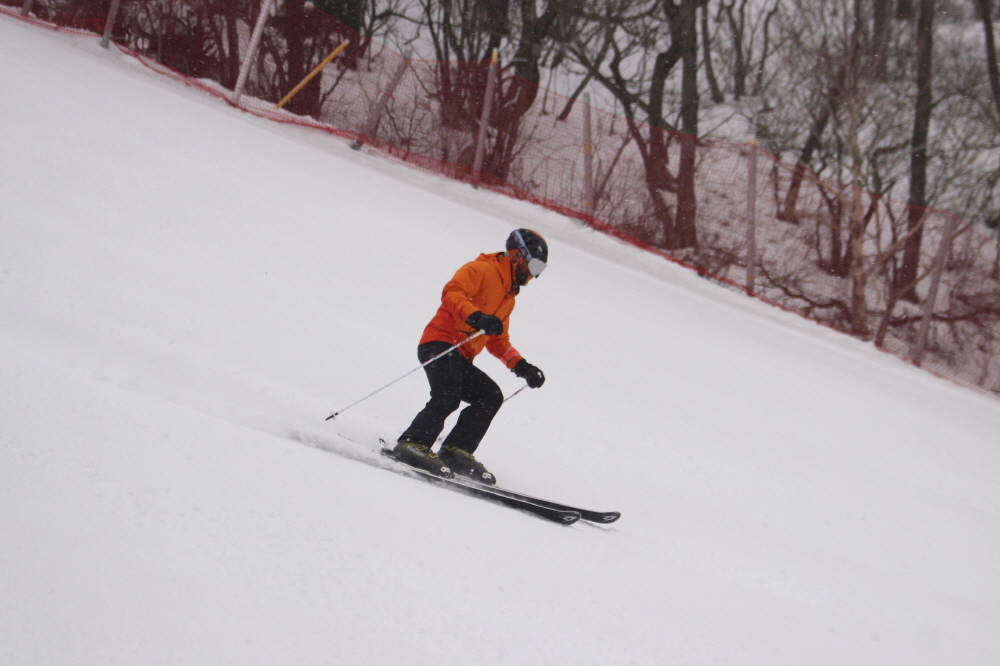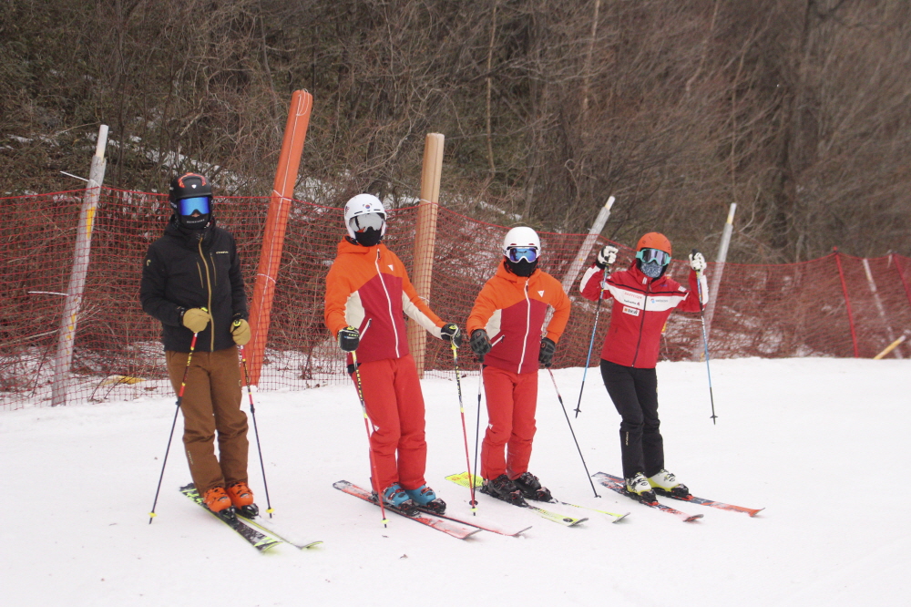 눈 속에서 조용히 슬로프를 내려오는 고객님들의 모습이