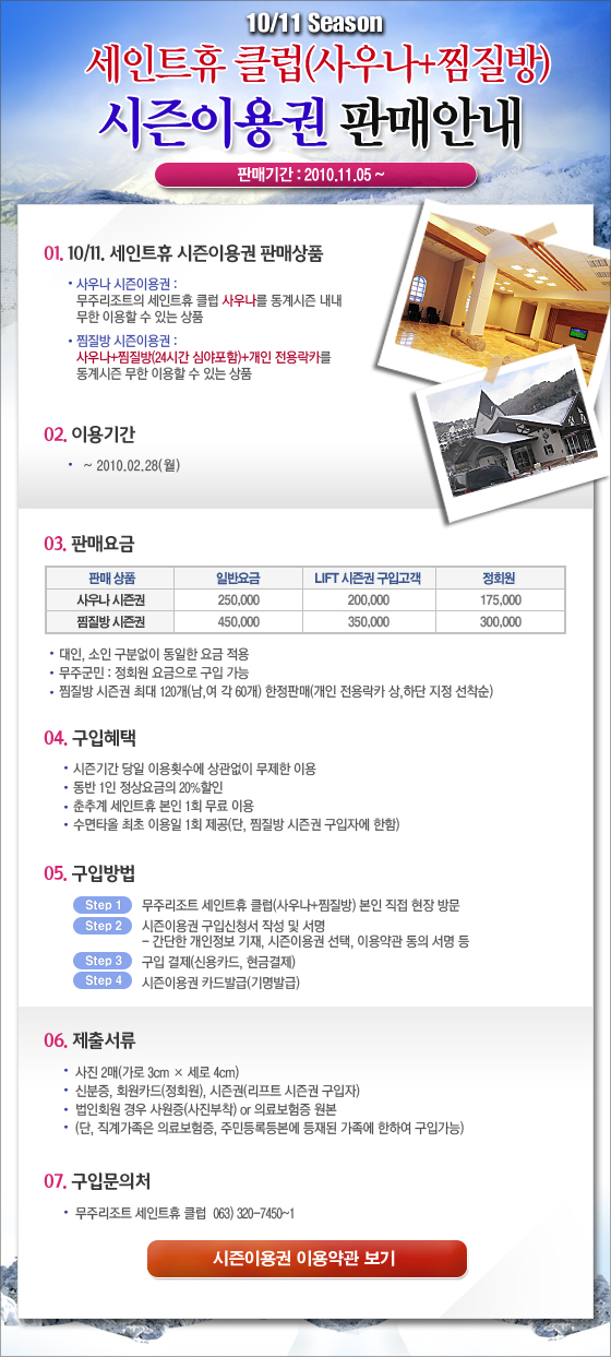 세인트휴 클럽 사우나+찜질방 시즌권 안내