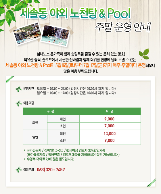 세솔동 야외노천탕 주말 운영안내2009-05-13 확인 다음글2009년도 무주리조트 회원을 위한 무주컨트리클럽 골프라운드 신청 안내 이전글하계성수기 가족/국민호텔 객실예약 안내 목록