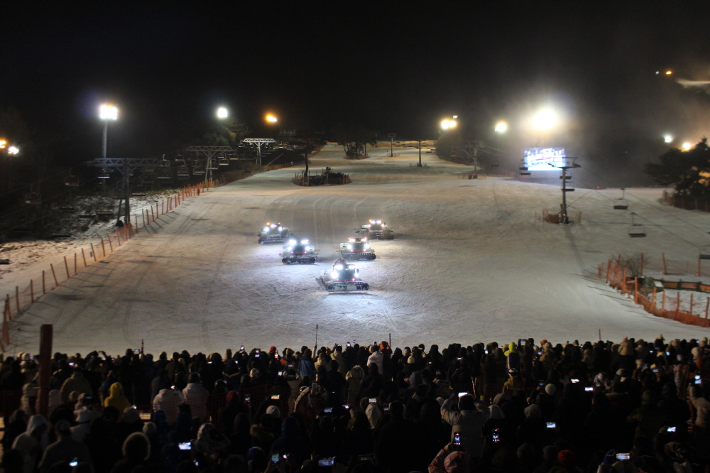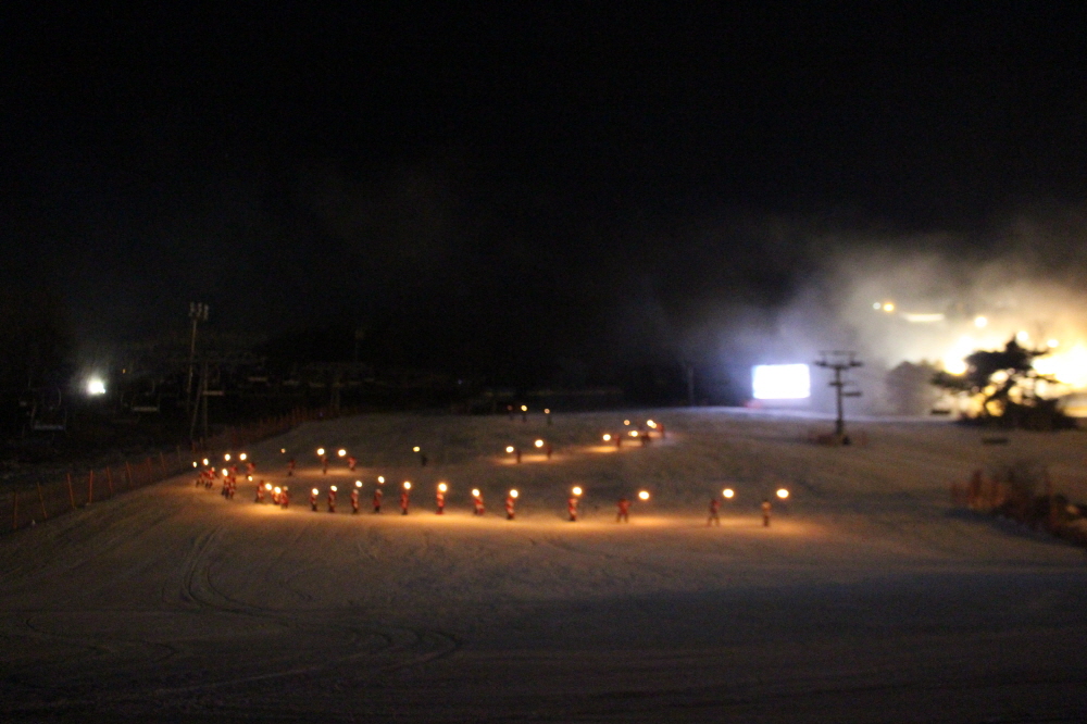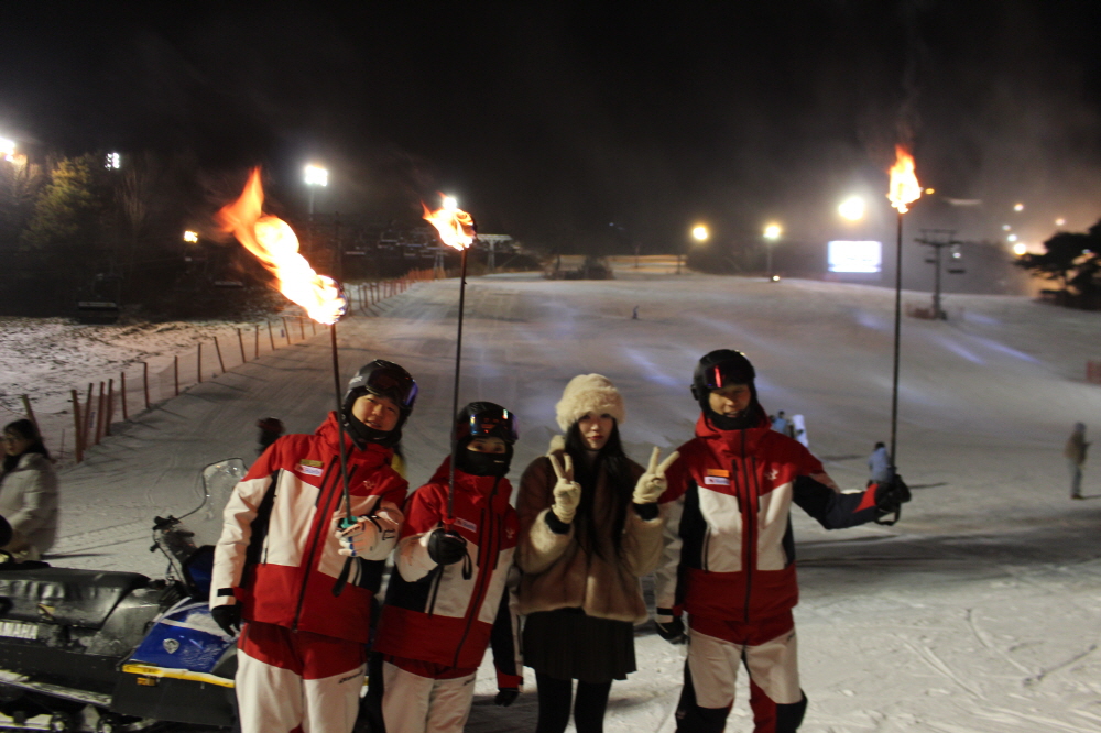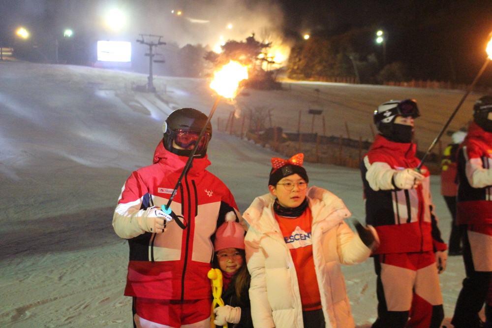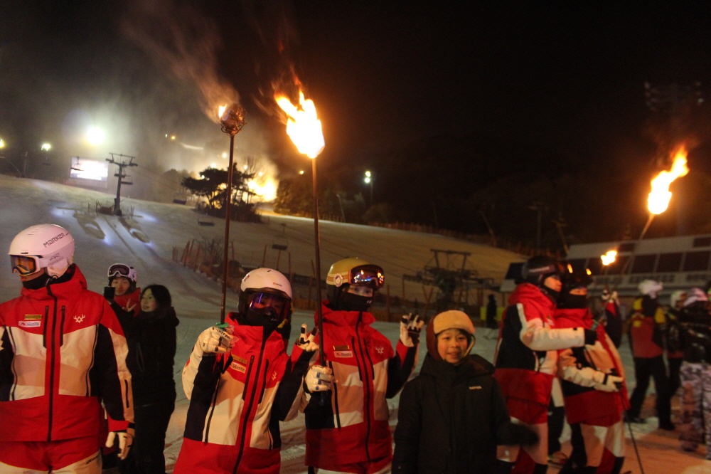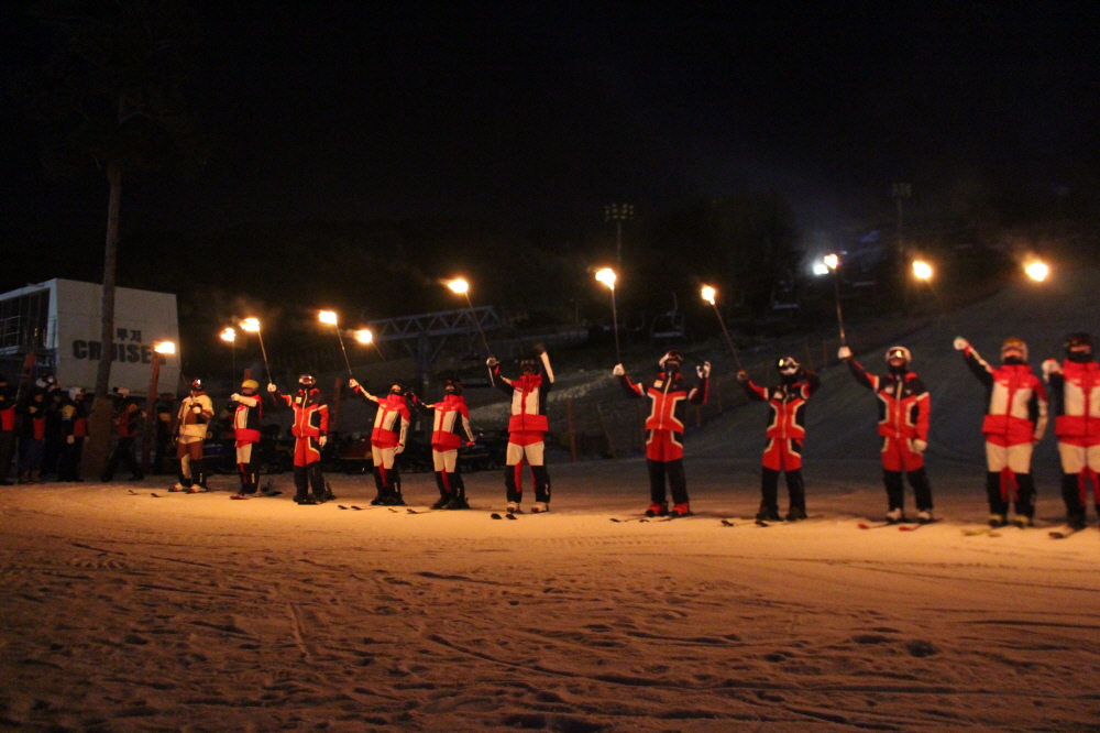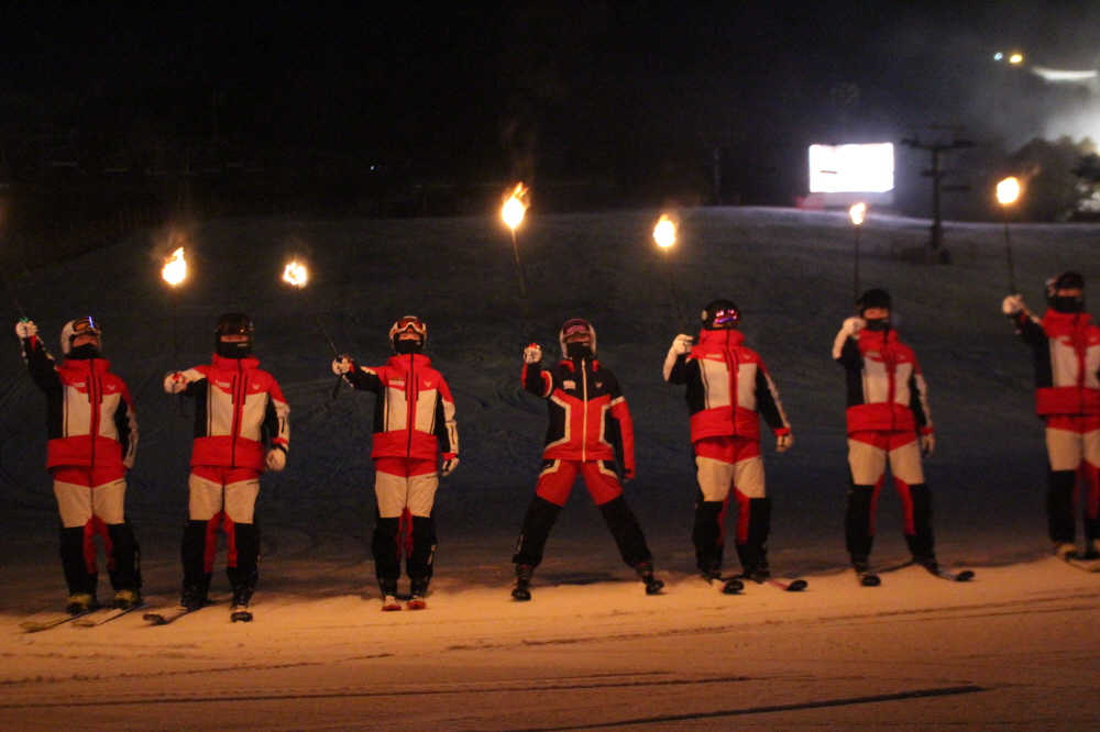 이어 스키스쿨 강사들의 횃불 행진이 진행되며