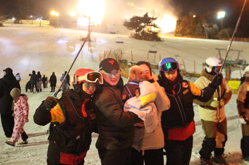 슬로프 위에서도 새해를 맞이하는 장면들이 펼쳐졌습니다.