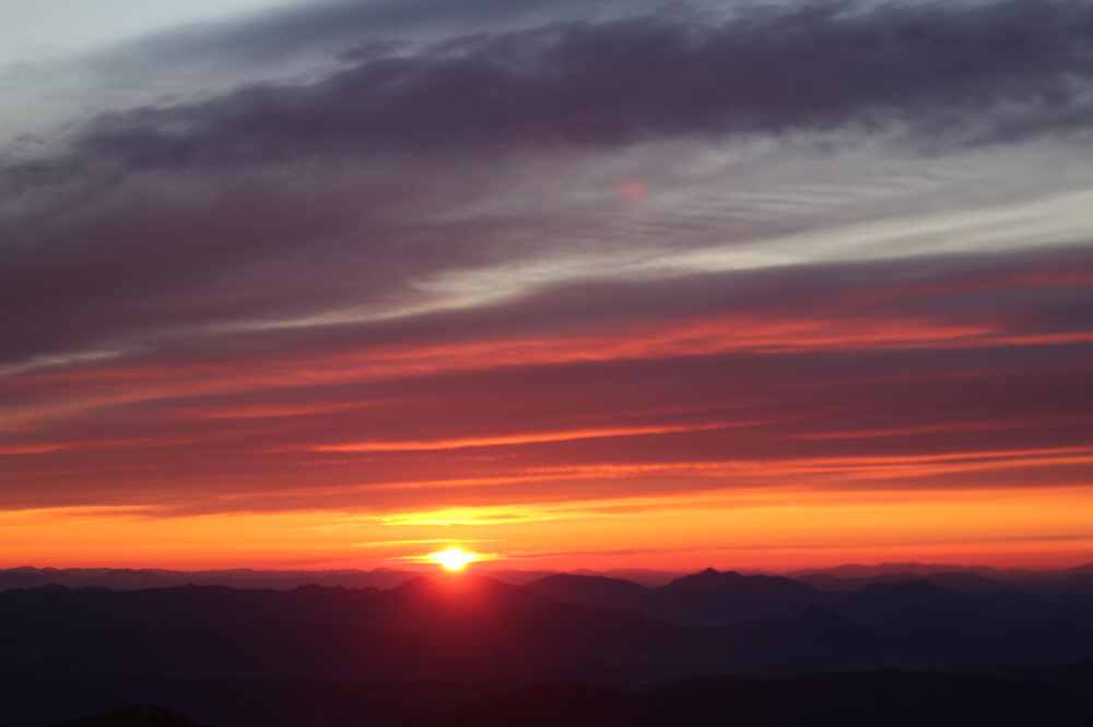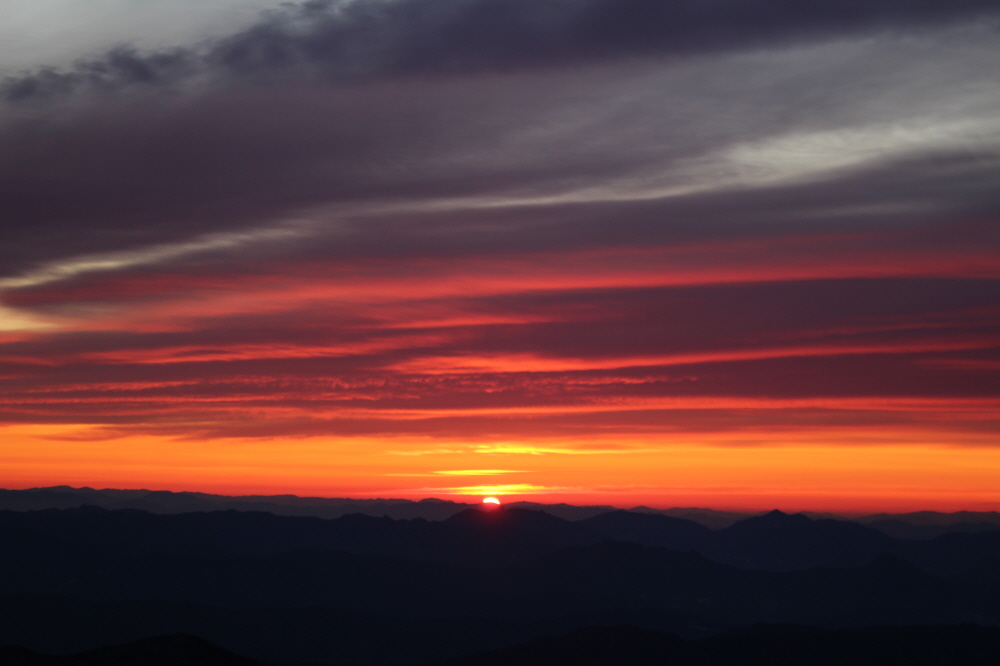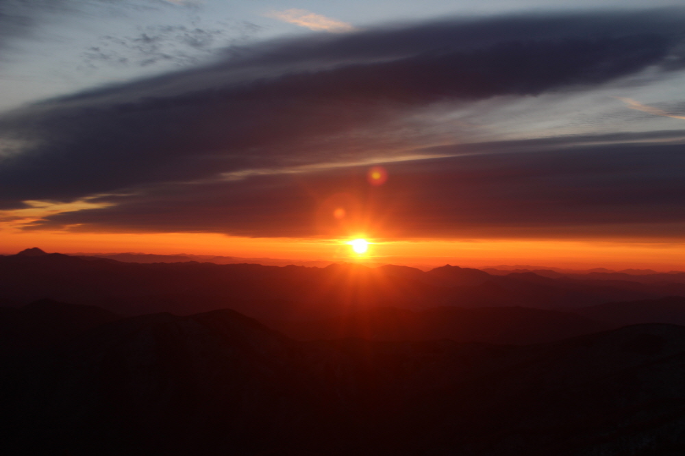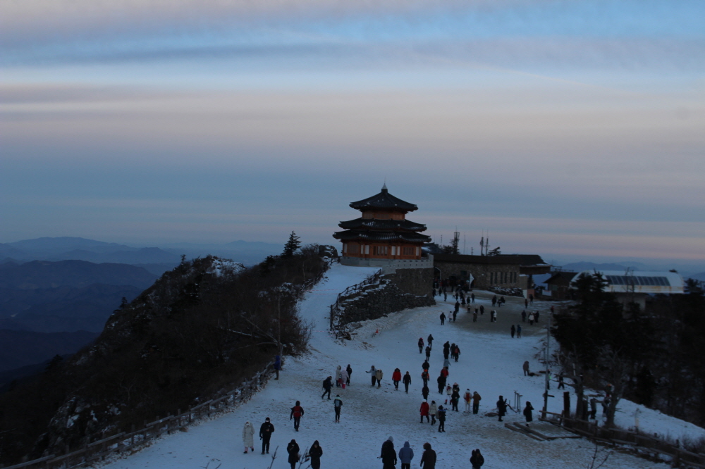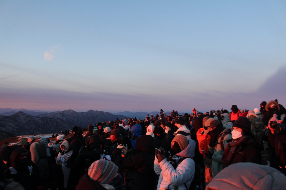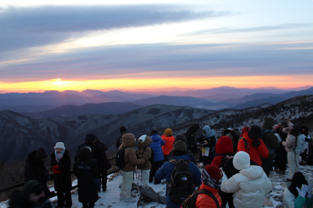 덕유산 정상 너머로 새해의 해가 모습을 드러냈습니다.