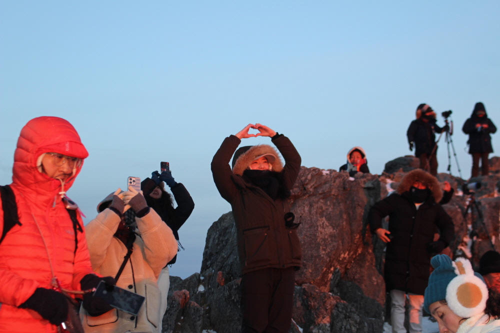 서로에게 새해 인사를 건네는 따뜻한 분위기가 정상 위를 채웠습니다.
