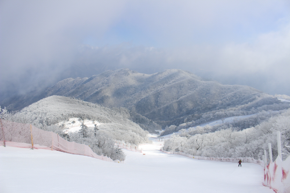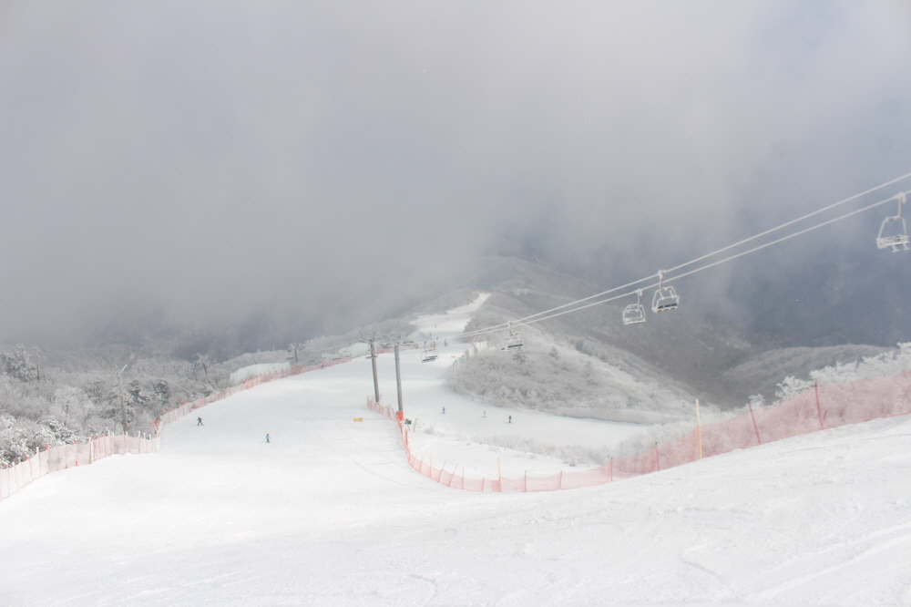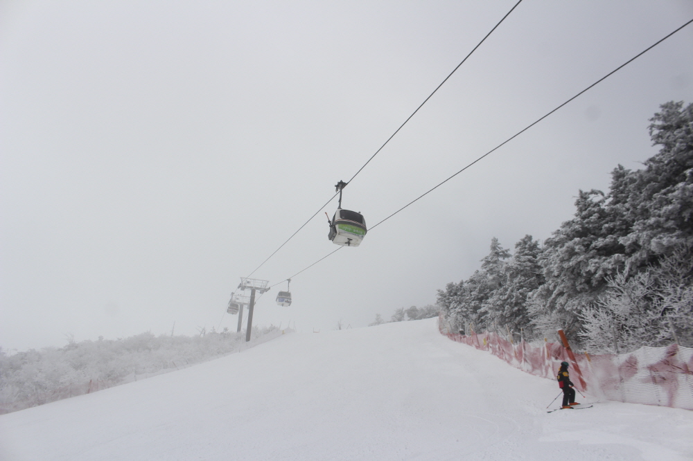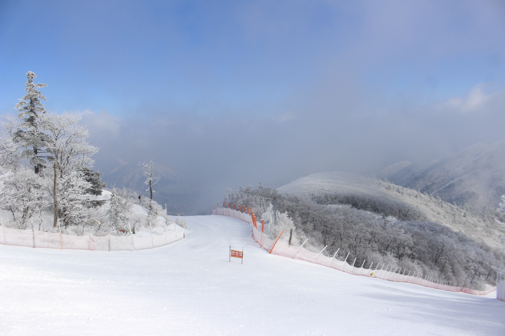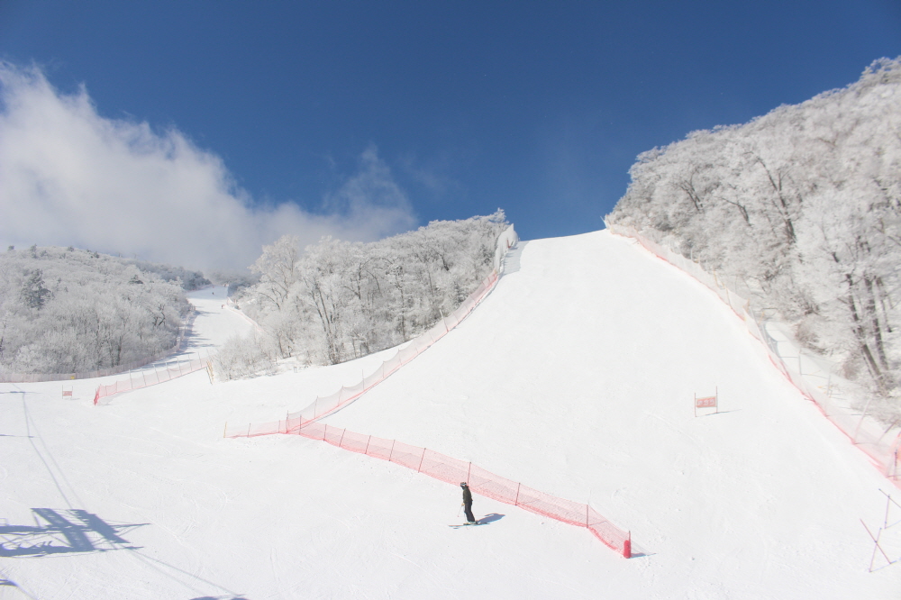 새하얀 슬로프가 탁 트이게 펼쳐졌습니다.