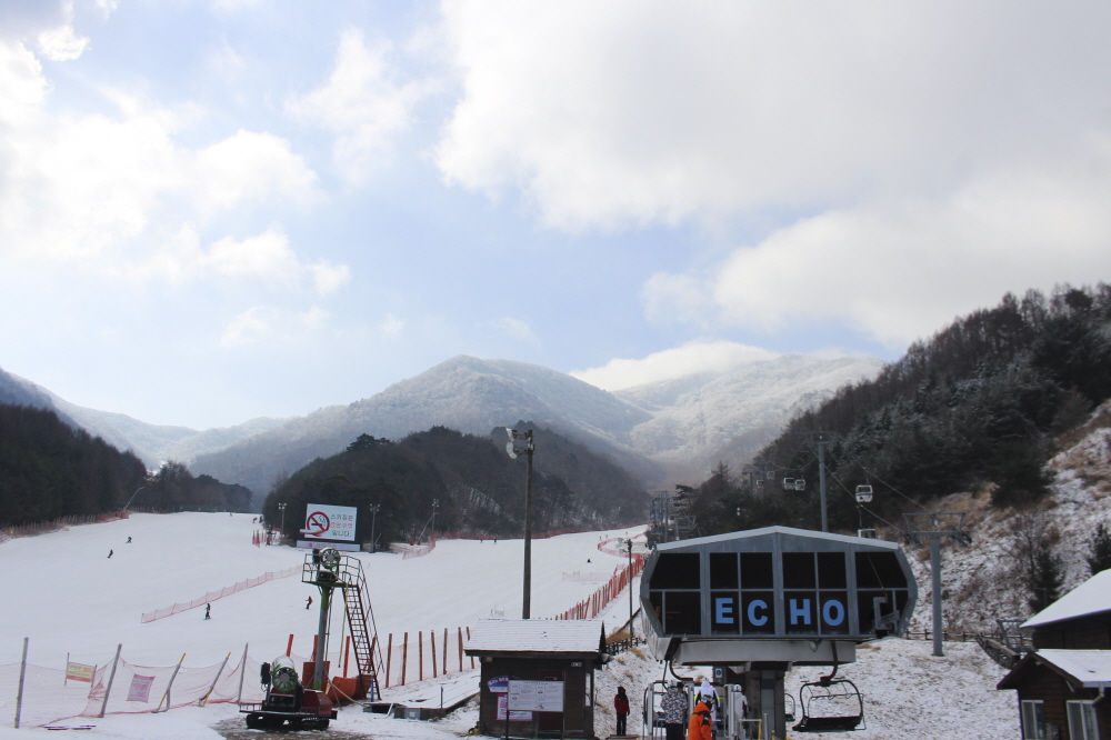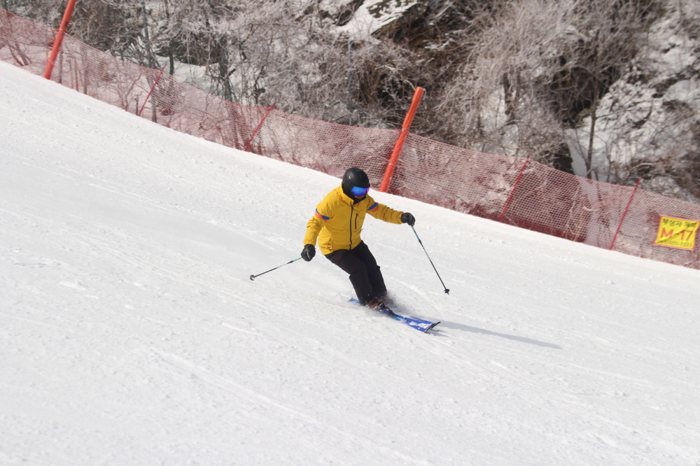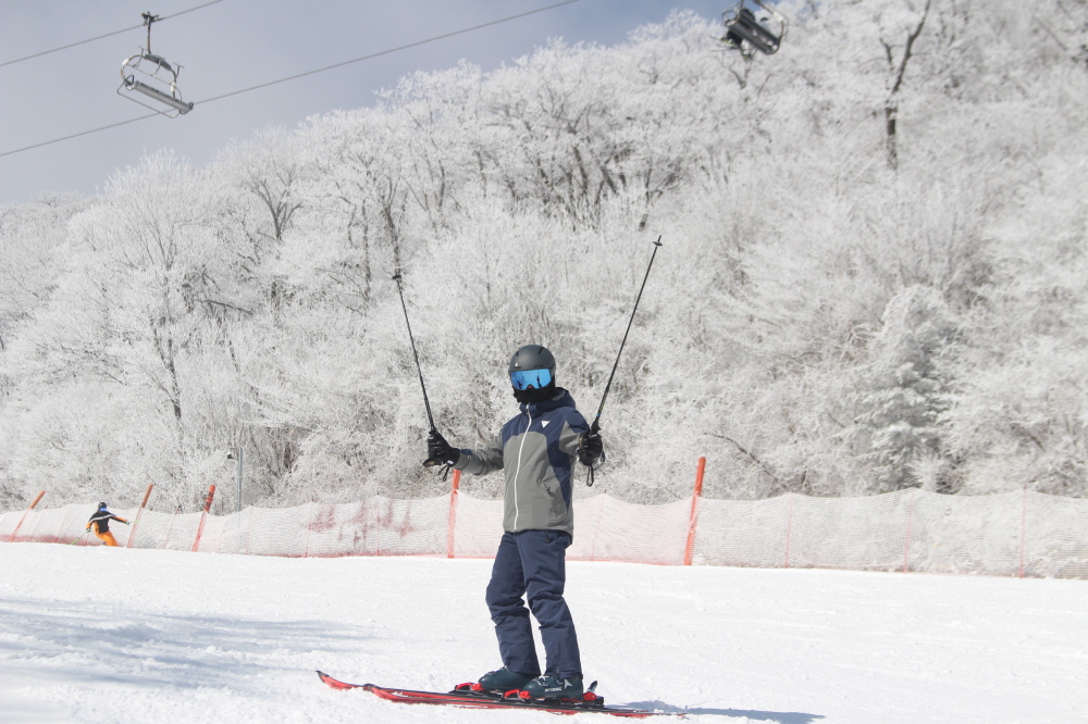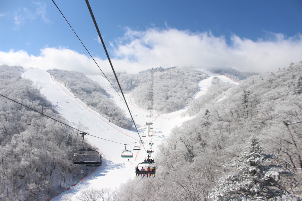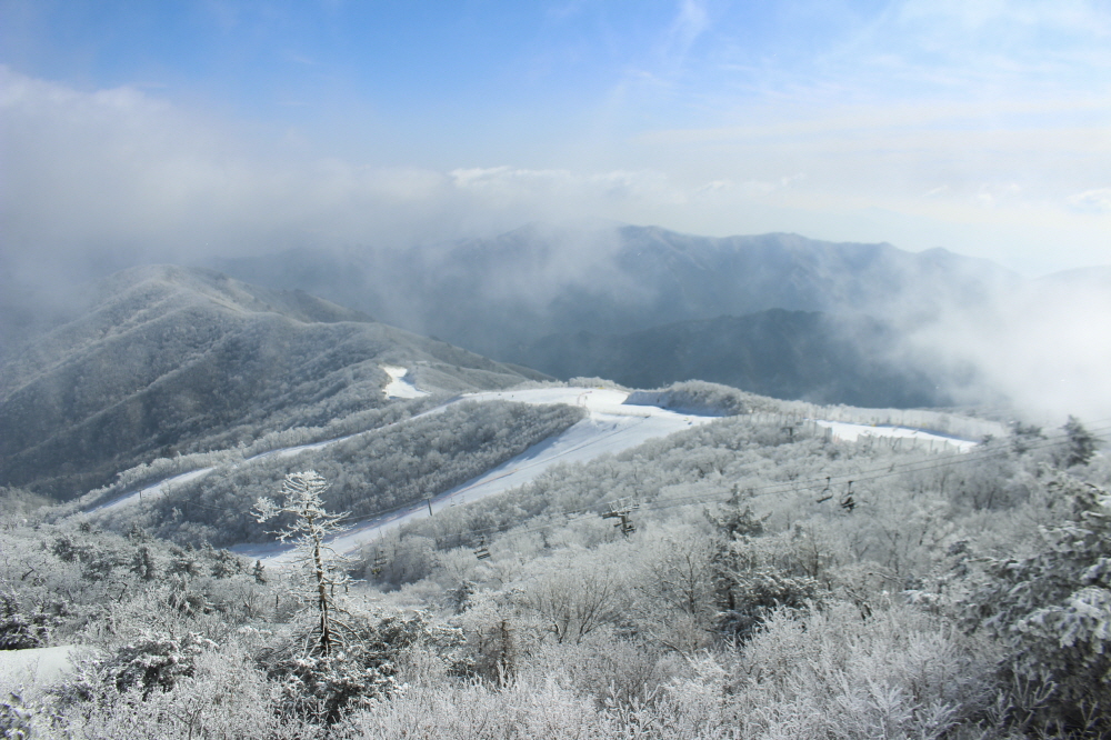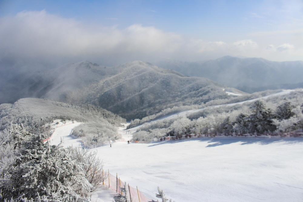 새하얀 슬로프가 탁 트이게 펼쳐졌습니다.