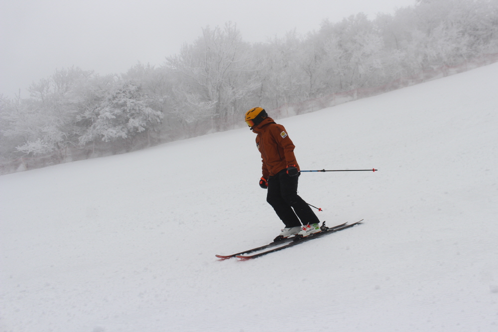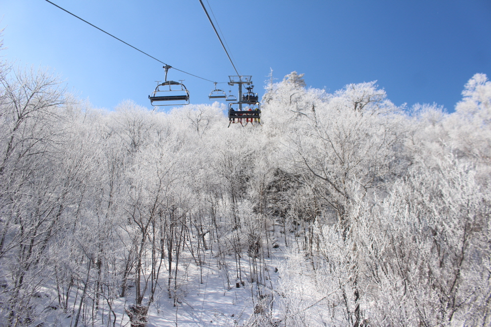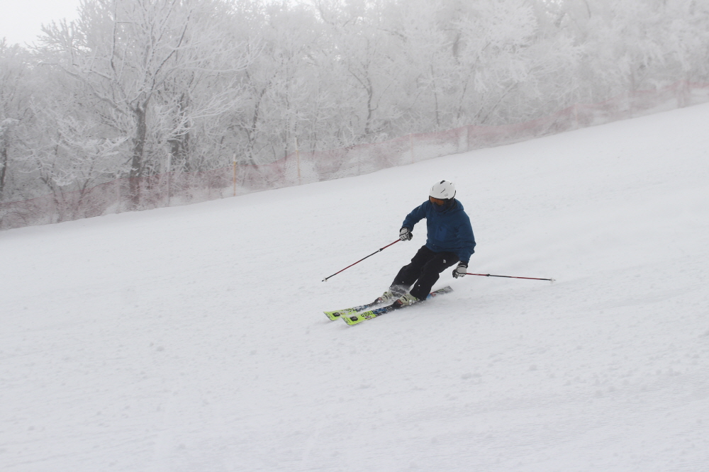 상고대 핀 나무들 사이로 슬로프를 내려오며,