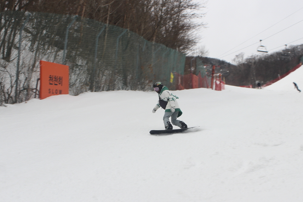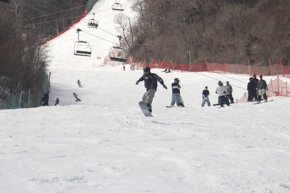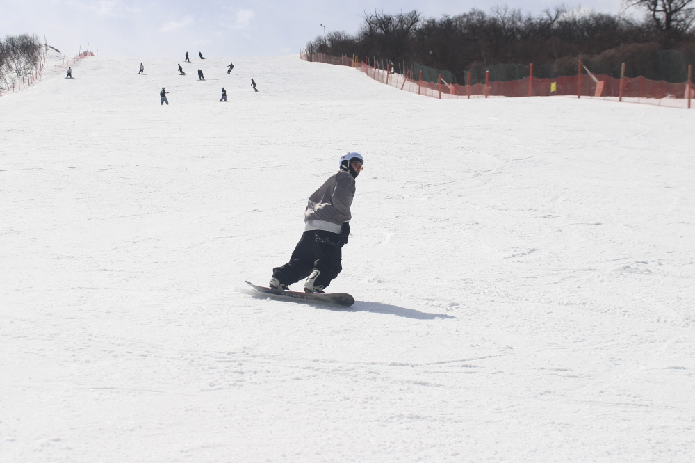 11시가 넘어서자 환한 햇살이 슬로프 위로 쏟아지며
